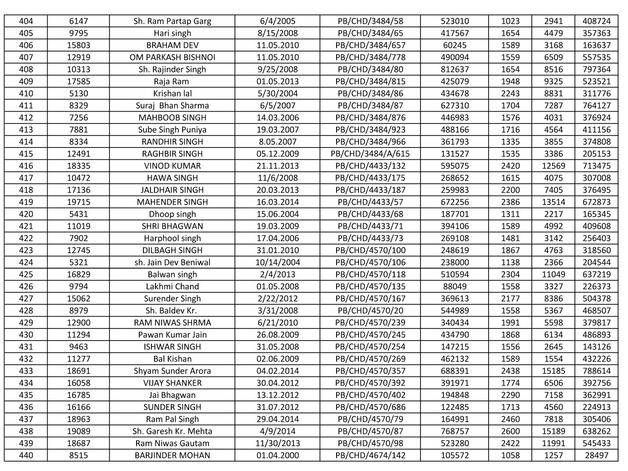 Relates to RO, Rohtak (Haryana) Revised Higher Pension List